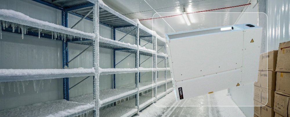 Ликвидация обледенения: Воздух становится суше, что предотвращает конденсацию и намерзание льда на испарителях и стенах.
